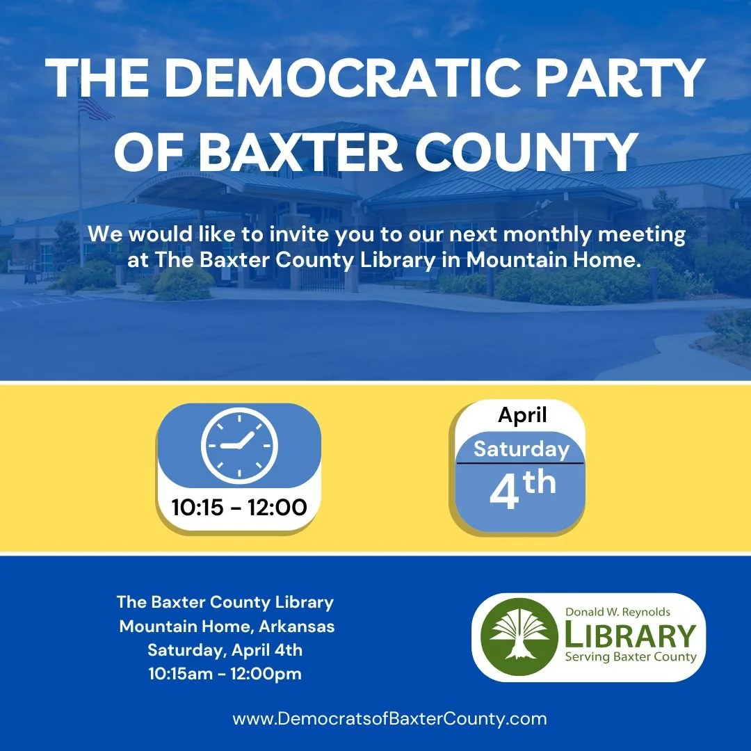 Join us for the April meeting at the the Baxter County Library on Saturday April 4th at 10:15. We will also elect state convention delegates for the DPA.